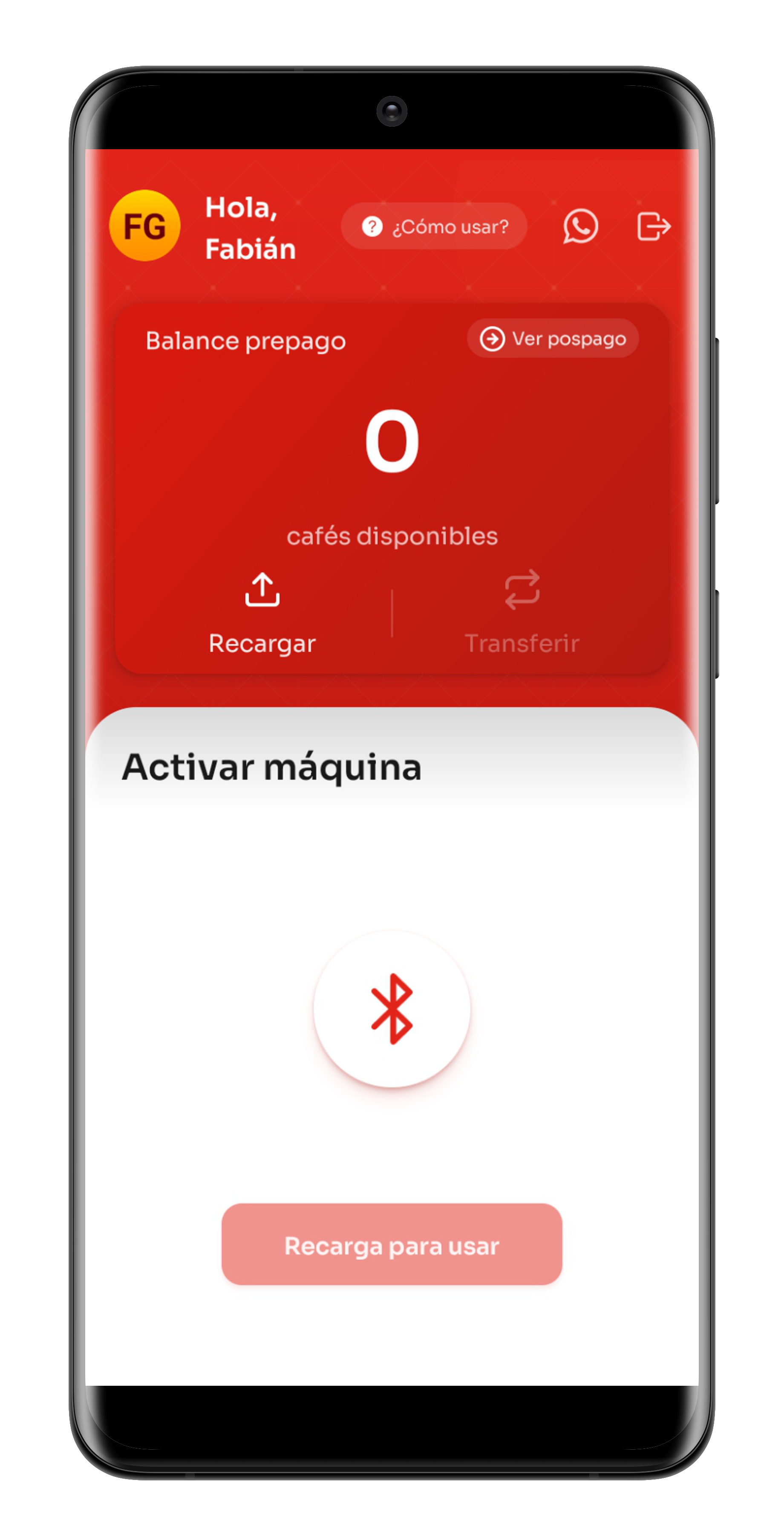 Olvídate del efectivo. Recarga tu saldo desde la app y disfruta tu bebida al instante en cualquiera de nuestras máquinas.